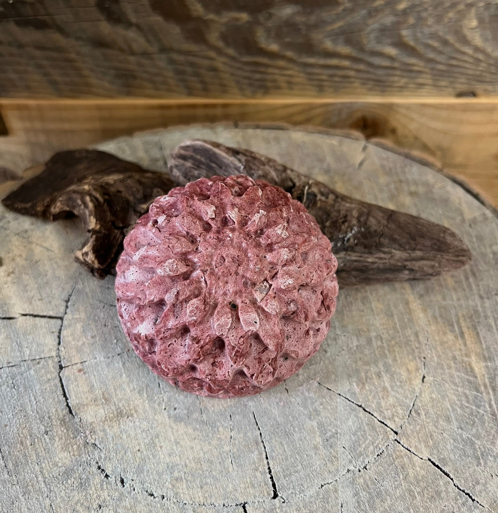 Ingrédients : sodium cocoyl isethionate, aqua, zea mays (corn) starch, persea gratissima (avocado) oil, sodium coco-sulfate, acacia concinna fruit powder, hibiscus sabdariffa flower powder, pelargonium graveolens flower oil.